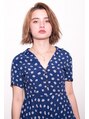アゴラインのボブに毛先を遊ばせたボブです。外ハネで少しカジュアルな雰囲気に、内巻きにし落ちついた雰囲気にも楽しめるヘアスタイル。前髪は長めに残してかきあげバングに。外国人風カラーならお任せください。