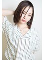 切りっぱなしのストレートボブ。ブラントカットですっきりとモードな印象に。前髪はかきあげバングでクールさをプラスしました。