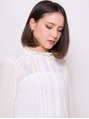 センターパートで顔まわりを囲った小顔感のあるナチュラルボブ。耳掛けアレンジでフェミニンな印象にもできます。