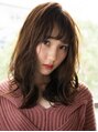 ほつれ感が絶妙に可愛いナチュラルウェーブのセミロングスタイルです。前髪は透け感のあるシースルーバングで甘めに可愛く。髪色で落ち着いた雰囲気を出しました。