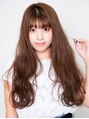 甘めフェミニンカールロング×ぱっつん透けバング