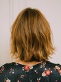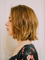 ミディアムロブの切りっぱなしスタイルで全体を軽くウエーブさせたナチュラルスタイルです。カールよりウエーブにする事で縦の動きが出るので重たく見えず、バランスのとれたスタイルになります。かきあげバングが大人らしいスタイルに☆