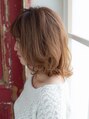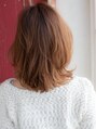 ミディアムの長さでカットされた前上がりレイヤースタイル◎カラーはナチュラルブラウンで明るいトーンで透け感を作ります。量が多い方はハイライトカラーで動きと透け感が出せるのでオススメカラーリングです♪