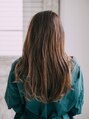 重たさを残したAラインシルエットのロングスタイル、落ち着いた雰囲気はトーンが暗いカラーリングで演出。シースルーバングで抜け感を出しましょう。【佐倉/髪質改善/ヘナ】