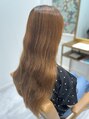 やわらかく細い、傷みやすい髪質のお客様。しっかりお手入れされていて、とてもきれいなロングヘアです!毛先を整えてカット、イノアカラーでダメージレスにピンクベージュをオン。髪質改善トリートメントでツヤ手触りアップ!カラーの発色まできれい◎