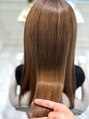 髪質改善トリートメントで定期的にヘアメンテナンスをされているお客様。元々ゆるくクセがあり、部分的に縮毛矯正もされています。縮毛矯正をした明るい髪色でも、毛先まで引っかかりのない、つるさら仕上がりです◎