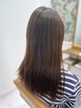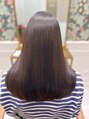 Instagramをみてご来店くださったお客様。引っ越してこられて、まだ美容室を決めきれずにおられたそう。ゆるいクセ毛をしっかりストレートに矯正。くすみのあるダークカラーにして、髪質改善トリートメントを♪さらりとツヤ感透明感のある仕上がりです◎