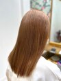 はじめましてのお客さま。明るめのヘアカラーがとてもお似合いです♪お悩みは、伸ばしているけど毛先が切れてしまったり、多くないはずなのになんだか髪が広がるところ。今回は髪質改善トリートメントをご提案。ダメージが大きい髪には最適◎