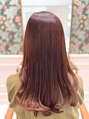 はじめましてのお客さま。縮毛矯正とカラーを定期的にされています。少し髪が細く少なくなってきたと感じていらっしゃるそう。カットで毛先に厚みを持たせ、毛先まで上品なブラウンでカラー、最後に髪質改善トリートメントを。巻いても指どおりよし◎