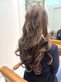 前回のハイライトを活かして、くすみグレージュにカラー◎やわらかい色味だから、肌映りも明るくかろやか♪髪質改善トリートメントのおかげで色持ちUP&毛先までカサつきづらい!