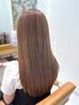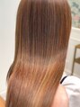 リピーターのお客様。カラーは伸びた根元のリタッチと、表面に少しだけハイライトを入れ直し。状態をみて縮毛矯正もしていますが、こまめなお手入れで、さらさらのロングヘアをキープされています◎