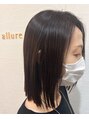 ネオメテオストレートでボリュームとうねりをおさえて、キラキラの艶を出しました。カットは肩にあたるワンレングスです、内巻きも外はねも出来るように毛先はパツンとしたラインを残してオイルで仕上げ。極細のハイライトも入っています。