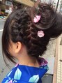 バングを流し、トップにボリュームを出したアップスタイルです。着物の美しさを引き立てるインパクト大のスタイルになっております。