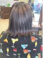 カラーはブリーチ1回のハイライトをいれその後、ハイトーンのアッシュ系のカラーを入れました。ベースは、ダークトーンのアッシュ系のカラーをいれました。前にした何回かブリーチの履歴もあるので全体的に透明感のある色になりました。