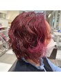 ピンクカラーとパーマスタイルUP