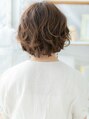 ランダムにかけたくせ毛風ウェーブが顔周りを優しく包み込み、気の抜けたリラクシームードを演出。ムースやワックスをもみこむだけの簡単スタイリング。忙しいママにもオススメです。(メイク担当:mod's上尾店 中田)