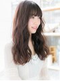 【スタイルは★ブックマーク★が便利】暗めカラーにぱっつんバングの重めスタイル。ウェーブにしてオイルワックスを付けて軽さを演出し、やわらかな雰囲気に。斜めバングや厚めバングで目力強調。前下がりで小顔にしても◎(メイク担当:COVERHAIRGROUP棟方)