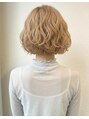 美人見えを叶えるハイトーンベージュと透明感ニュアンスパーマ。顔周りの計算されたカットで小顔効果も抜群。ふんわりとした質感で、女性らしい柔らかな印象に。どんなシーンでも自信が持てる、洗練されたスタイルをご提案します。