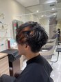 地毛を活かしたふんわりマッシュにアクセントカラーを入れて、個性を出しています。アクセントカラーにはタイガーリリーを入れてオレンジにしています。いつものスタイルに遊び心をプラスすると、気分も変わり楽しくなります。
