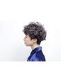 カジュアルでほんの少しモードなショートヘアです。襟足は刈り上げてあり、全体にマッシュでカットしてある髪に動きをつけてくるくるにして無造作ヘアに仕上げています。つるんとしたマッシュに飽きたらパーマで動きをつけてみましょう!