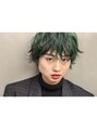 ショートヘアに無造作にクセをつけ、左で8:2に分けてメンズライクなカッコイイ雰囲気に仕上げました。毛先を少しハネさせ遊びをプラスするのもポイント。ヘアカラーはブリーチを一回した後にダメージの無いグリーンのカラーでおしゃれに遊びをプラス。