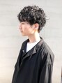 黒髪パーマhair。パーマをしっかりかける事で男らしさはプラスしながら、襟足の刈り上げはせず、優しい雰囲気のヘアスタイルです。全体にランダムに髪が動くようにパーマをかけているので、スタイリングで手を掛けずに簡単に動きを出す事ができますよ。