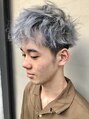サイドから襟足までを6mmで刈り上げたツーブロックヘア。トップはブリーチを過去の履歴含めて3回してから、白っぽく色落ちする様にシルバーパープルでカラーを。紫を少し混ぜる事で透明感がUPしますよ。刈り上げ部分は黒で残す事で伸びても目立ちません。