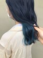 ネイビーブルーにインナーターコイズブルー同系色のデザインカラーも明るさを変えるだけでインナーカラーがぱっ引き立つのでかわいいです!インナーのターコイズカラーはブリーチ2回必須です、、!