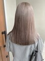 柔らかくて透明感たっぷりな、ミルクティーベージュカラー!ブリーチをしているので、オレンジ味の無いまろやかなベージュになります。ケアブリーチを使っているので、つやもしっかりあります!