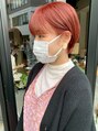 柔らかいオレンジベージュ。ブリーチありの暖色カラーです!鮮やかな色味には、ブリーチが必要になります。暖色系のカラーは、ブリーチなしでもできるカラーがたくさんあるので、ご相談ください!