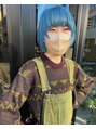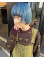 ペールブルーカラー。2回以上のブリーチが必要になります!色落ちもだんだんさらに薄いブルーになっていくので、長く楽しめるカラーです!顔まわりのレイヤーもポイントでかわいいです!