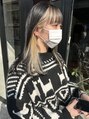 フェイスフレーミングカラー。ポイントで前髪と顔まわりをブリーチしています。ほぼ抜きっぱなしのブロンドベージュカラーがかわいいです!