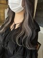 前髪のポイントとイヤリングこ部分のを一回のブリーチでシルバーベージュに!全体は暗めのグレージュでポイントカラーの色とバランスのいい色味にしました!イヤリングカラーが見えやすいように顔まわりは短く流れやすくカットしています!