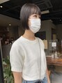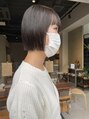 ライン感がかわいいぷつっとしたミニボブです!コンパクトにおさまるボブがかわいいです!カラーはグレージュカラーで透明感を残して少し暗めに仕上げています!黒髪とボブとの相性かわいいです!