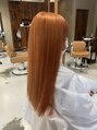 ワンブリーチでオレンジブラウンに!全体はブリーチをして、元々のインナーはリタッチブリーチをして、青いところは優しいブリーチを使って色をとりました!あまり派手になりすぎないようブラウンを少し足しナチュラルなオレンジに仕上げました!