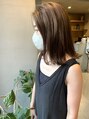 細かいハイライト(ウィービング)を入れてからオンカラーで何気にカラーの工程を2回して色落ち、立体感、白髪ぼかし、色落ちの楽しみなど大人スタイルだからこそこだわりあるスタイルにしています。ベースは少し長めの切りっぱなしボブです。