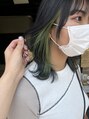 イヤリングカラーネオングリーン顔まわりのデザインカラーは一気に雰囲気がでてオシャレになります!レイヤー具合やカットに合わせてデザインしていきます!