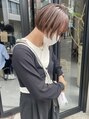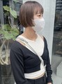 プツッとミニボブスタイル。ドライのみで内に入るようカットしてあります。前髪はワイドバングにして、少し個性的な印象になるようにした所がポイントです!