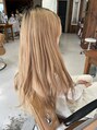 ロングヘアからバッサリ切って肩上のボブにしました。インナーはブリーチをして白に近いベージュにし、表面は暗めのブラウンベージュにしました。