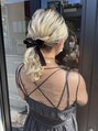 クルクルに巻いてゆるっとなるようにアレンジをしました。横の髪の毛が耳の上にくるように引き出し方を工夫してやりました!