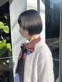 ミニボブぷつっとしたライン感がポイントです!おさまりよく、スタイリングしやすくカットしています顔まわりウルフもかわいいです!