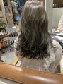 ブリーチなしでつくるオリーブベージュ。カラー剤で明るくしてからオリーブカラーを入れているので、低ダメージで透明感カラーが出せるのでおすすめです!色落ちも赤みが出にくいカラーになるので、色落ちも楽しみながらできるカラーです!