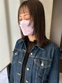 オン眉に顔周りにレイヤー、ステップカットで少しウルフっぽく見えるようにカットしてあります。裾は切りっぱなしボブで外ハネにしてありますが、重さの無いスタイルに見えます。顔周りに動きがあるのでマスクをしていてもマスク無しでも可愛いです。