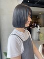 丸く収まるボブに顔まわりをポイントでカット!顔まわりに軽い動きをつけると重たい印象にならず、一気に印象も変わるのでとってもオススメです!ブリーチなしでつくるブルーブラックは地毛に近づけた艶カラーです!