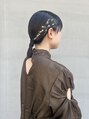 肩ボブの肩の結婚式参列ヘアセットです!大人っぽくタイトに仕上げました!おり重ねたデザインと金箔、金ピンの相性は抜群です!シンプルの中にもお洒落さをつめこみました!ぜひ大切な日のヘアセットお任せください!