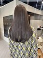 透けるような透明感のミルクティーグレージュ。こちらはカラー剤でダブルカラーをしています。ブリーチよりも傷まず、ワンカラーよりも圧倒的に透明感がでるので、現状の髪色が暗めの方、いつもオレンジになってしまう方はこちらがおススメです♪