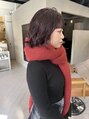 ブリーチなしボルドーカラーカシスレッドボブパーマ/中西