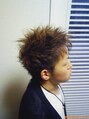 - カット・パーマ(ゆるめツイスト&スパイラル毛先ぬき)不規則なカラー