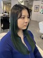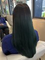 緑のグラデーションカラーです!毛先のブリーチ履歴を生かしてグリーンに!根本からナチュラルにグラデーションになるようにカラーしました♪人と被りたくない、変わったカラーを楽しみたい方にオススメのカラーです!