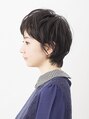 毛先がほん少し曲がっているようなくせ毛風のニュアンスがポイント。ふわっとさせたトップと、毛先の束間、キュっとしまった襟足できれいなシルエットを作ることで骨格がきれいに見える暗髪ショート【EARTH横浜店】